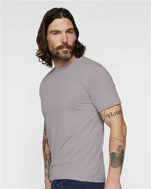 - Double-needle stitched sleeves and bottom hem