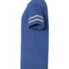 • Contrast-color collar and varsity striping on sleeves