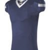 - Contrast color Lycra triple bar-tacked set-in mitered V-neck collar